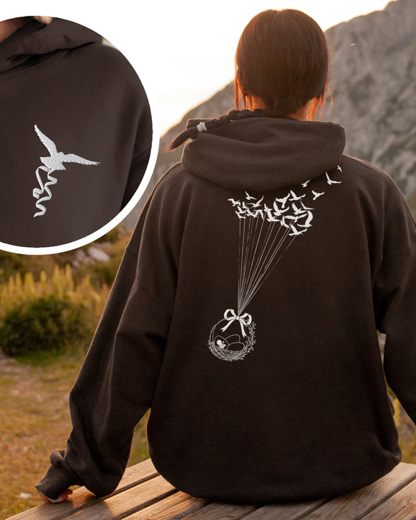 + 4 moreBirds Flying with Egg Basket Embroidered Front Pocket Womens Hoodie