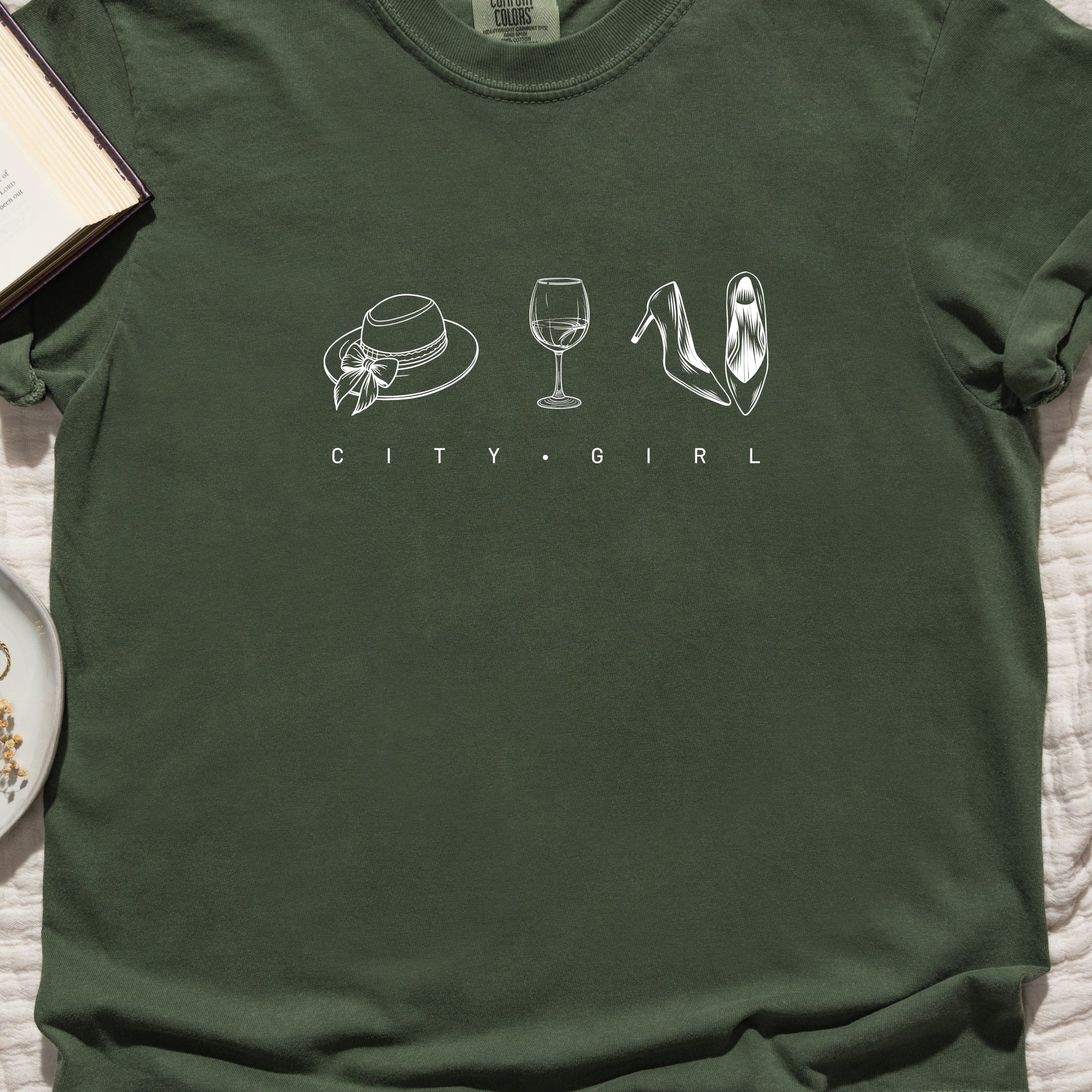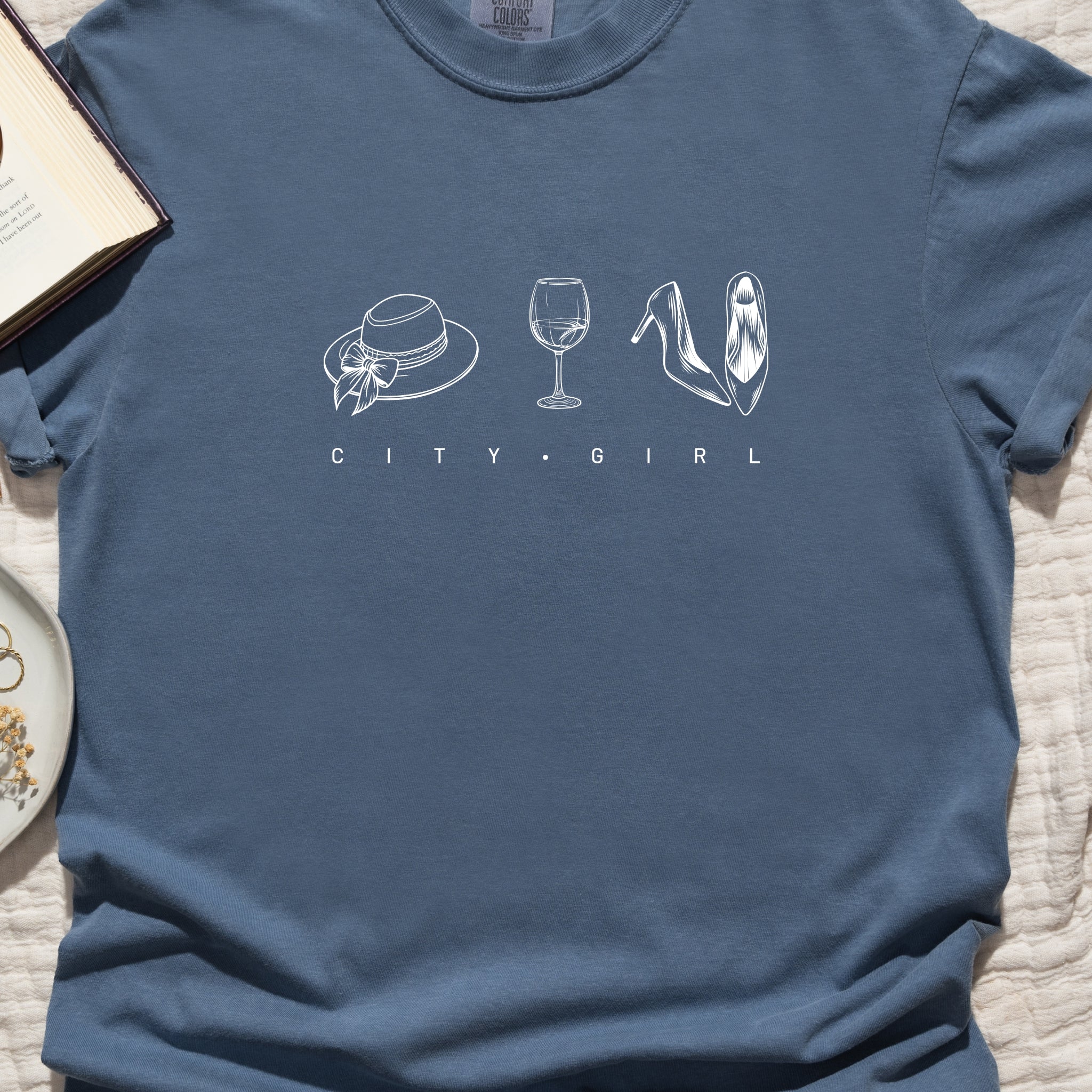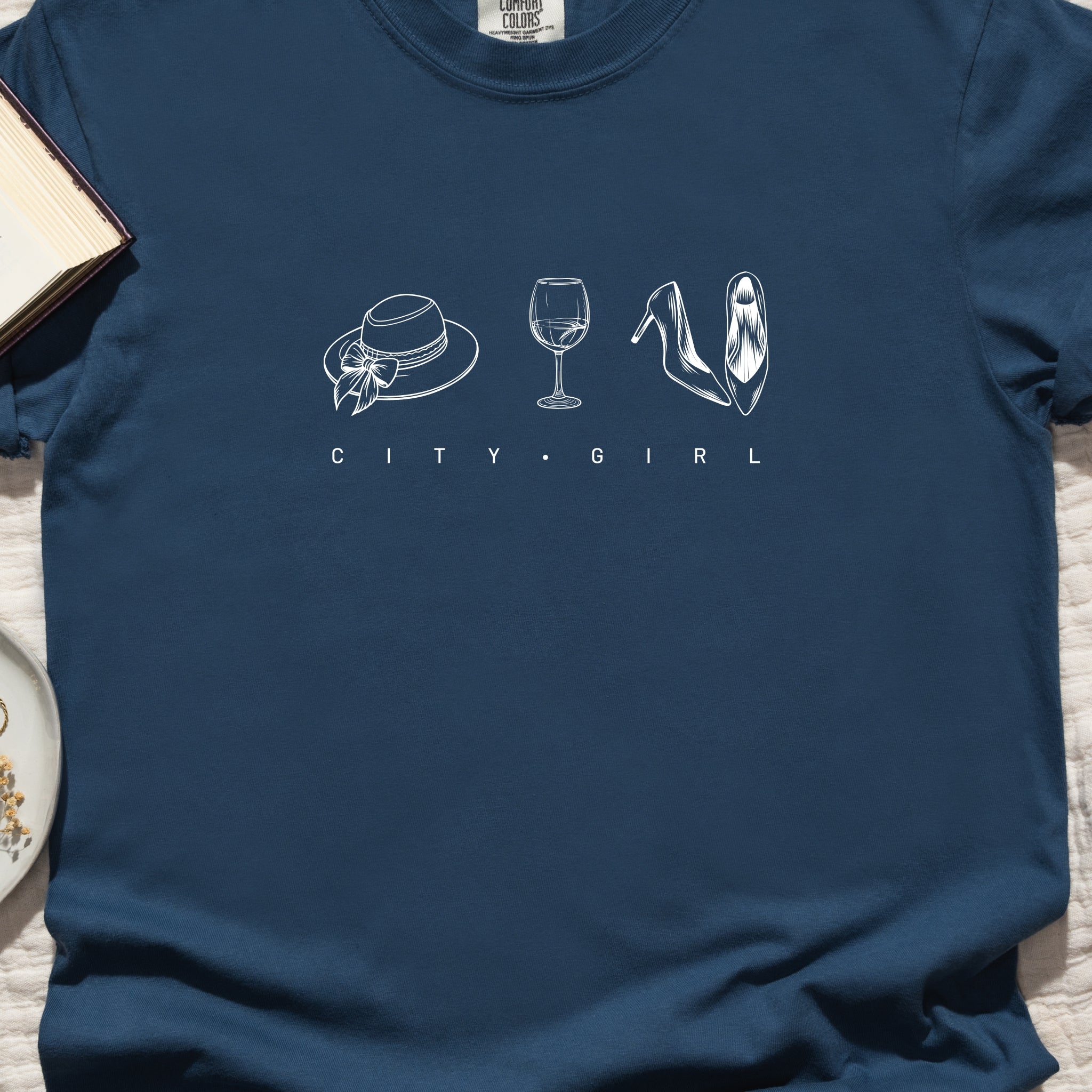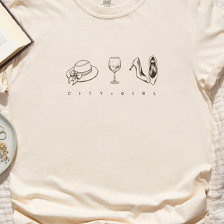 🏙️👒🍷 👠 Bold, classy, and always a little sassy. This tee is made for the woman who struts through life in high heels, sips her wine with flair, and tops it all off with a fabulous hat. Featuring chic graphics of a fancy hat, a glass of wine, and a pair of glam heels, this shirt celebrates the sparkle and sophistication of city living. With “City Girl” printed below, it’s perfect for brunch queens, skyline dreamers, and anyone who knows how to turn sidewalks into runways.