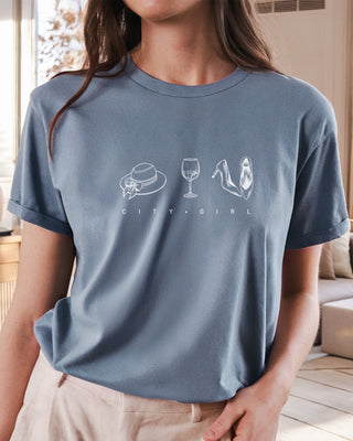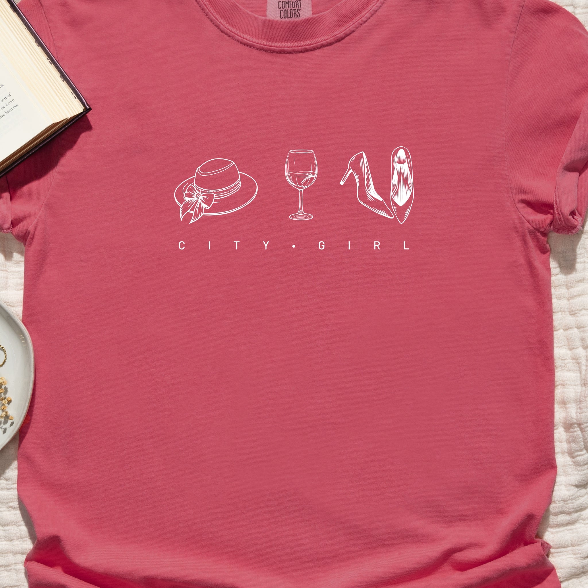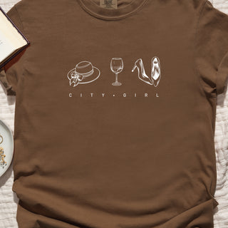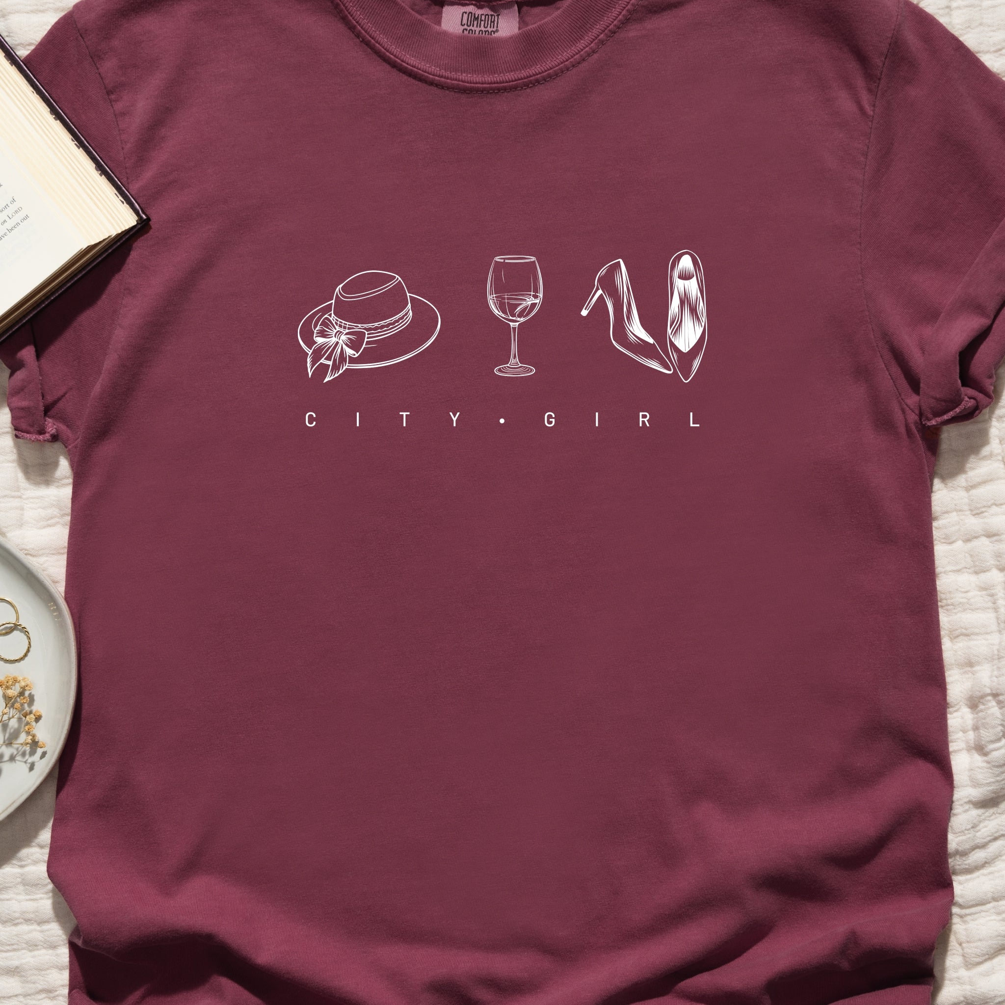 🏙️👒🍷 👠 Bold, classy, and always a little sassy. This tee is made for the woman who struts through life in high heels, sips her wine with flair, and tops it all off with a fabulous hat. Featuring chic graphics of a fancy hat, a glass of wine, and a pair of glam heels, this shirt celebrates the sparkle and sophistication of city living. With “City Girl” printed below, it’s perfect for brunch queens, skyline dreamers, and anyone who knows how to turn sidewalks into runways.